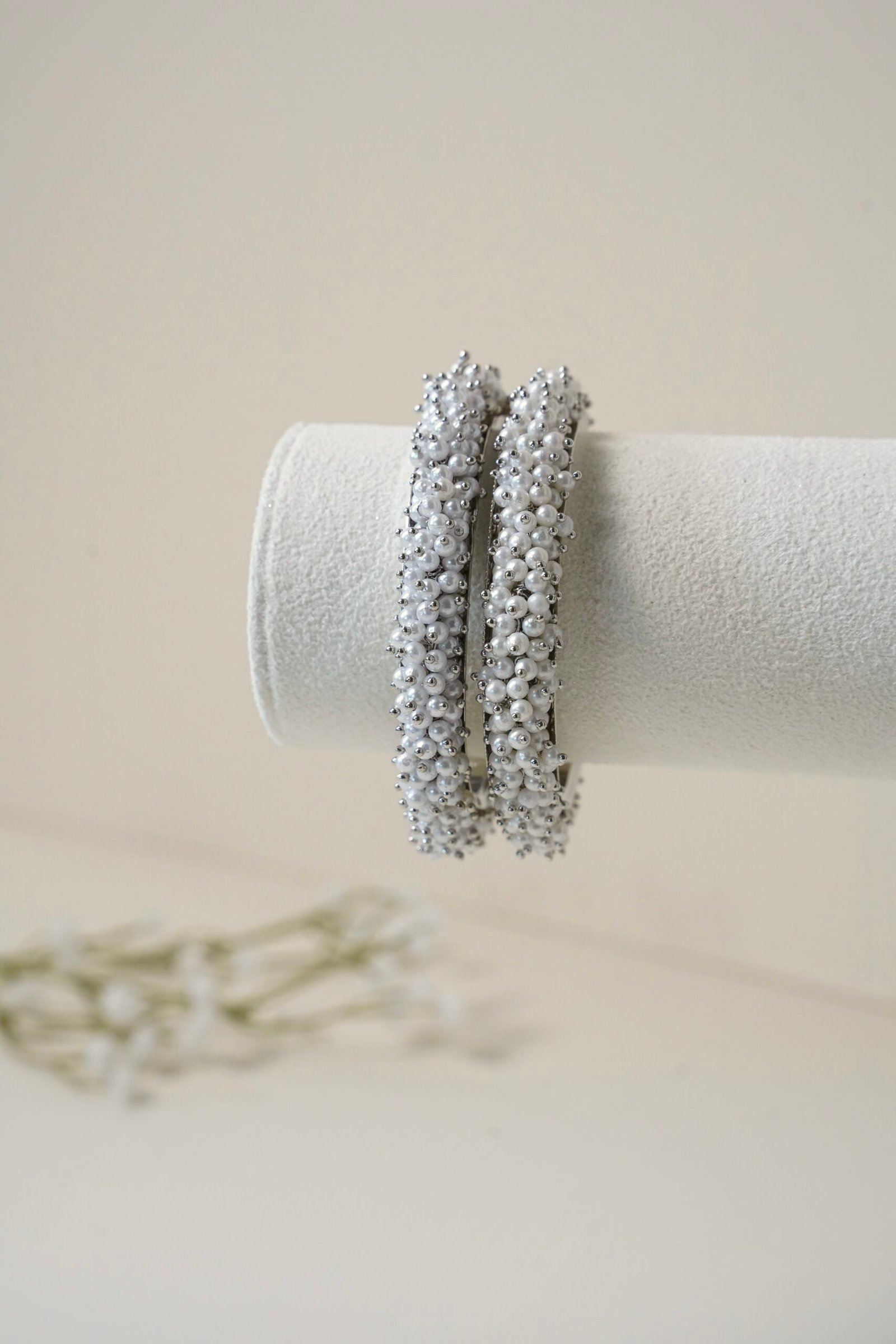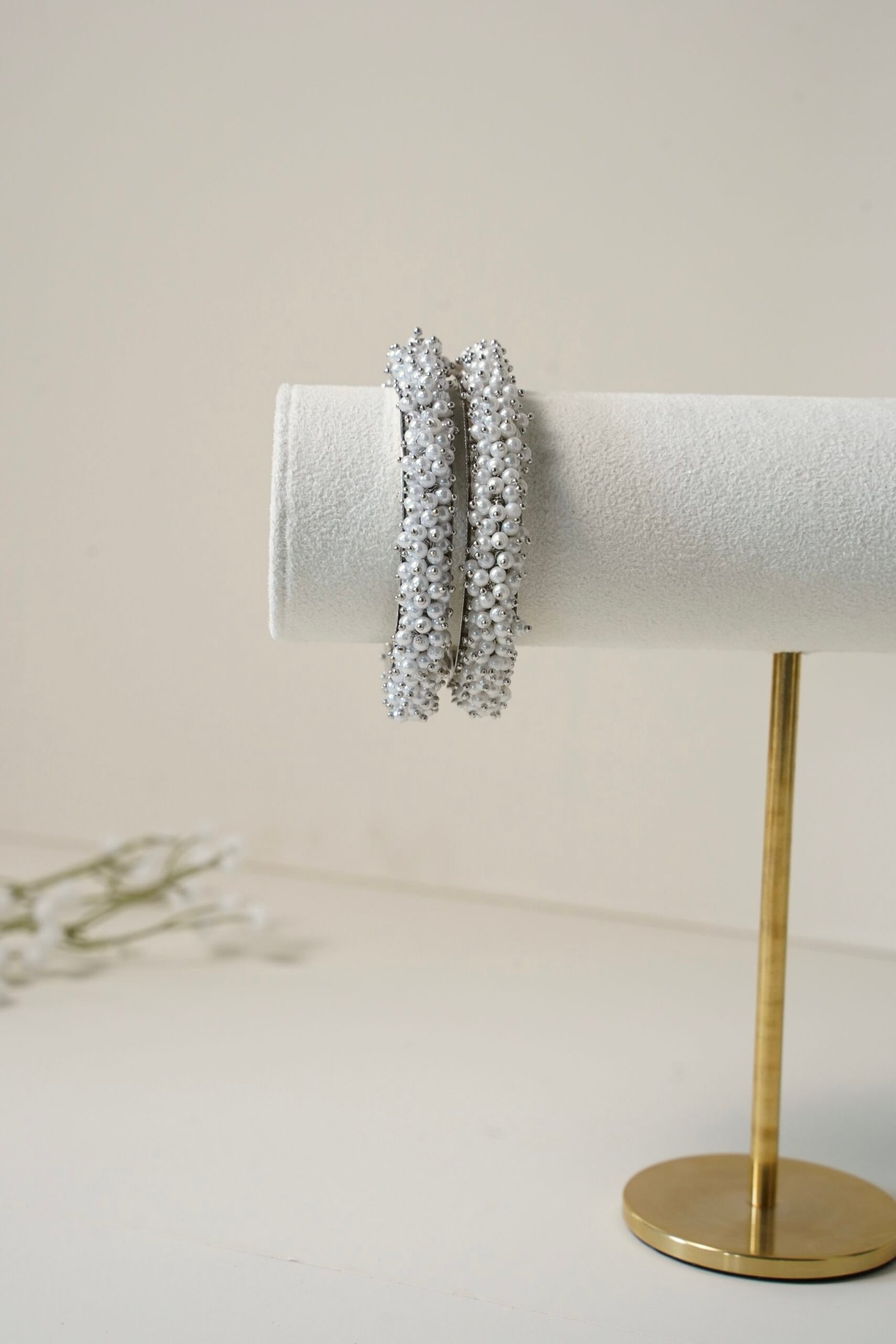 A lightweight clustered-pearl bangle that adds the perfect finishing touch to any colorful bangle stack.