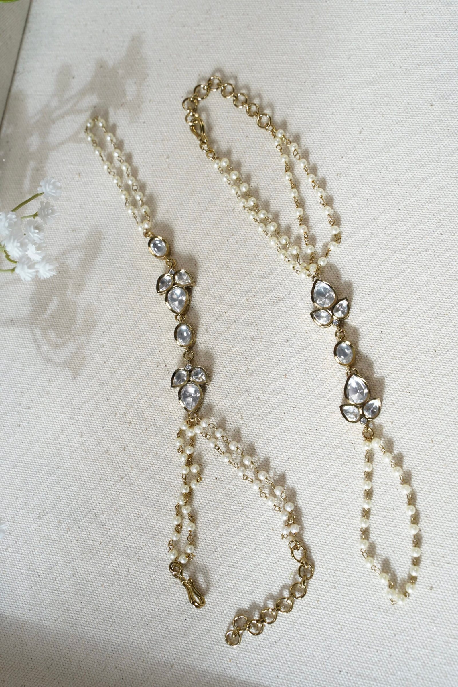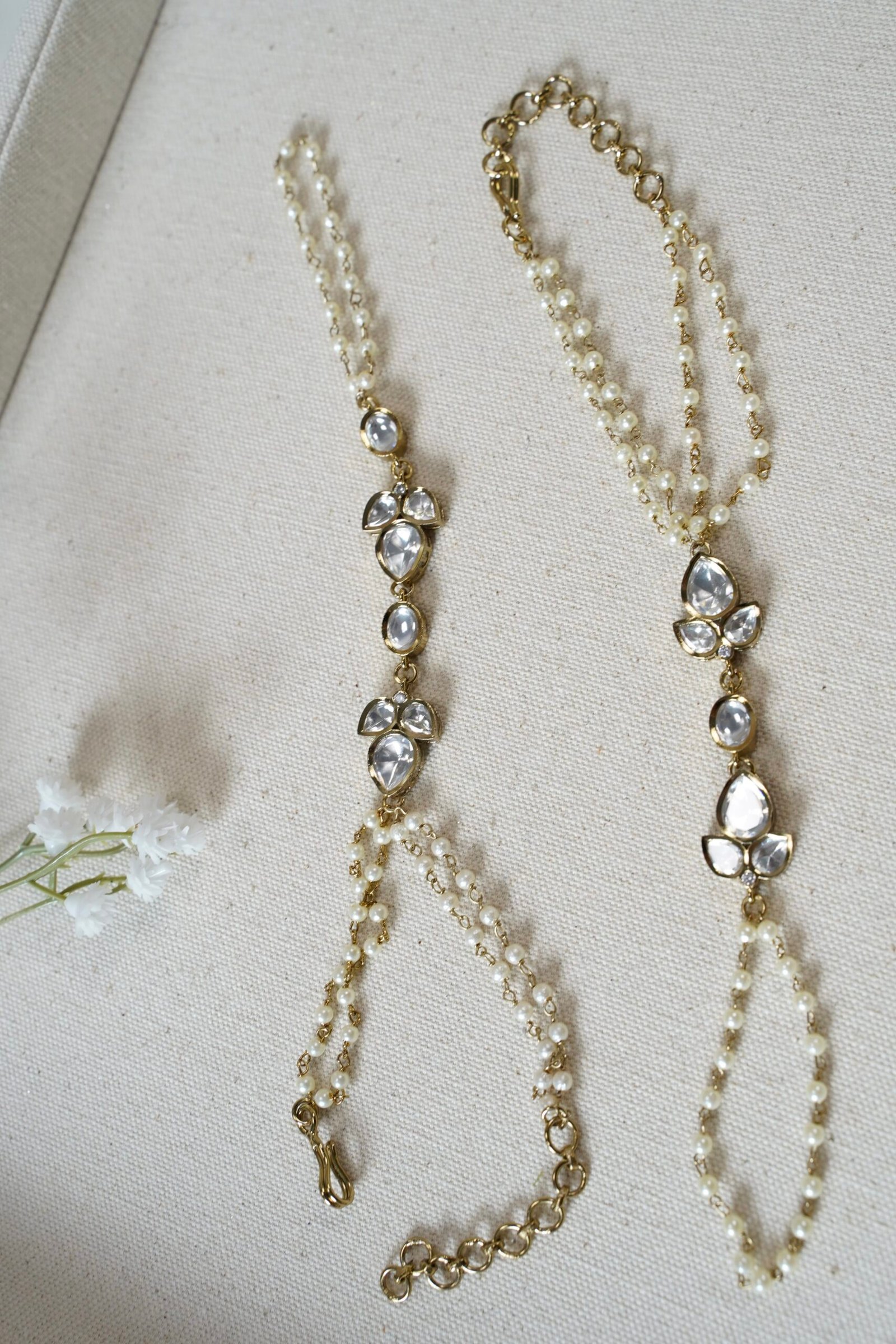 Lightweight haathphool with kundan accents and tiny pearl details, designed for an elegant and subtle finish.