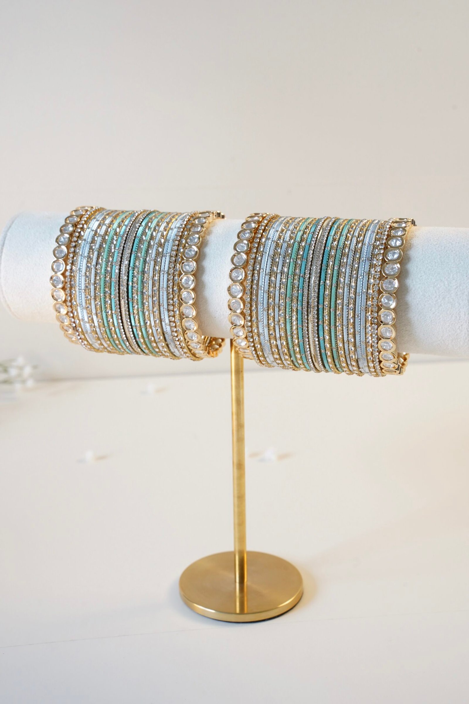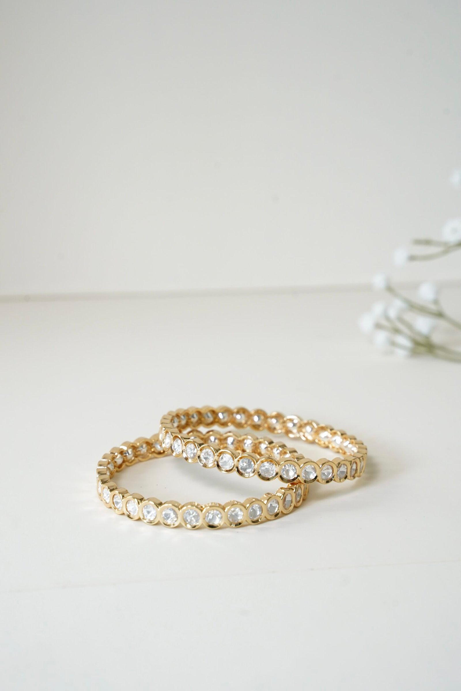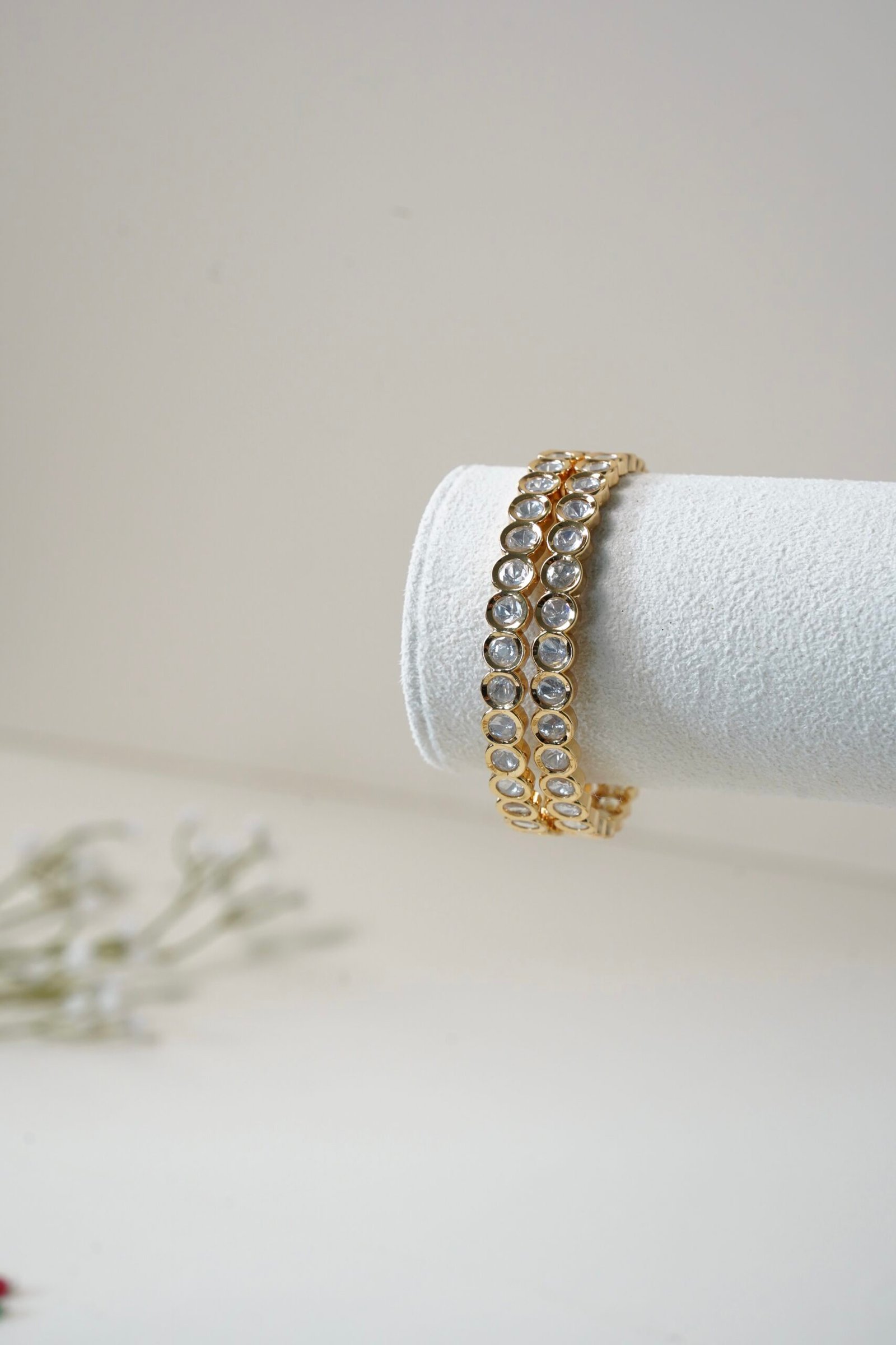 set of two elegant Kundan bangles in light gold—perfect alone or added to a colorful bangle stack.