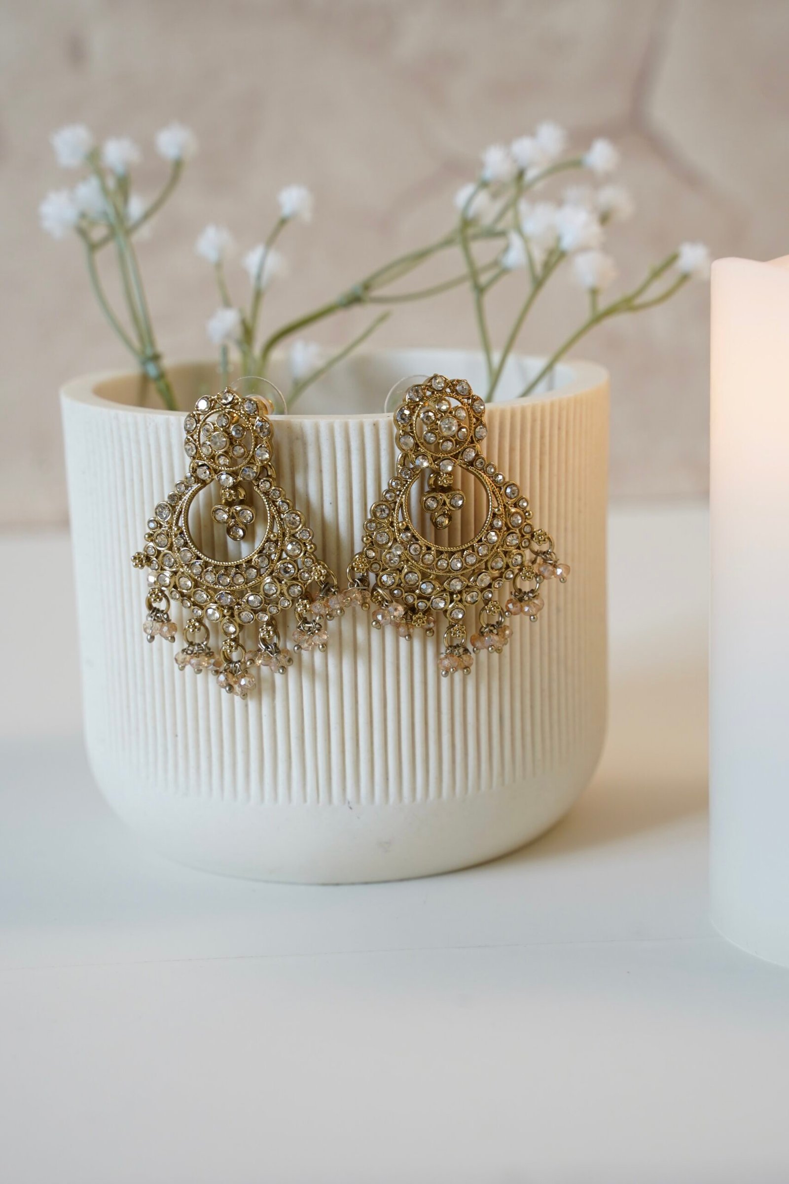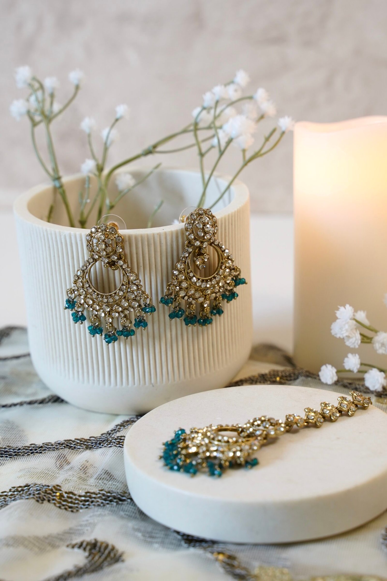 A radiant zircon earring and tikka set designed to add brilliant sparkle and elegance to your look.