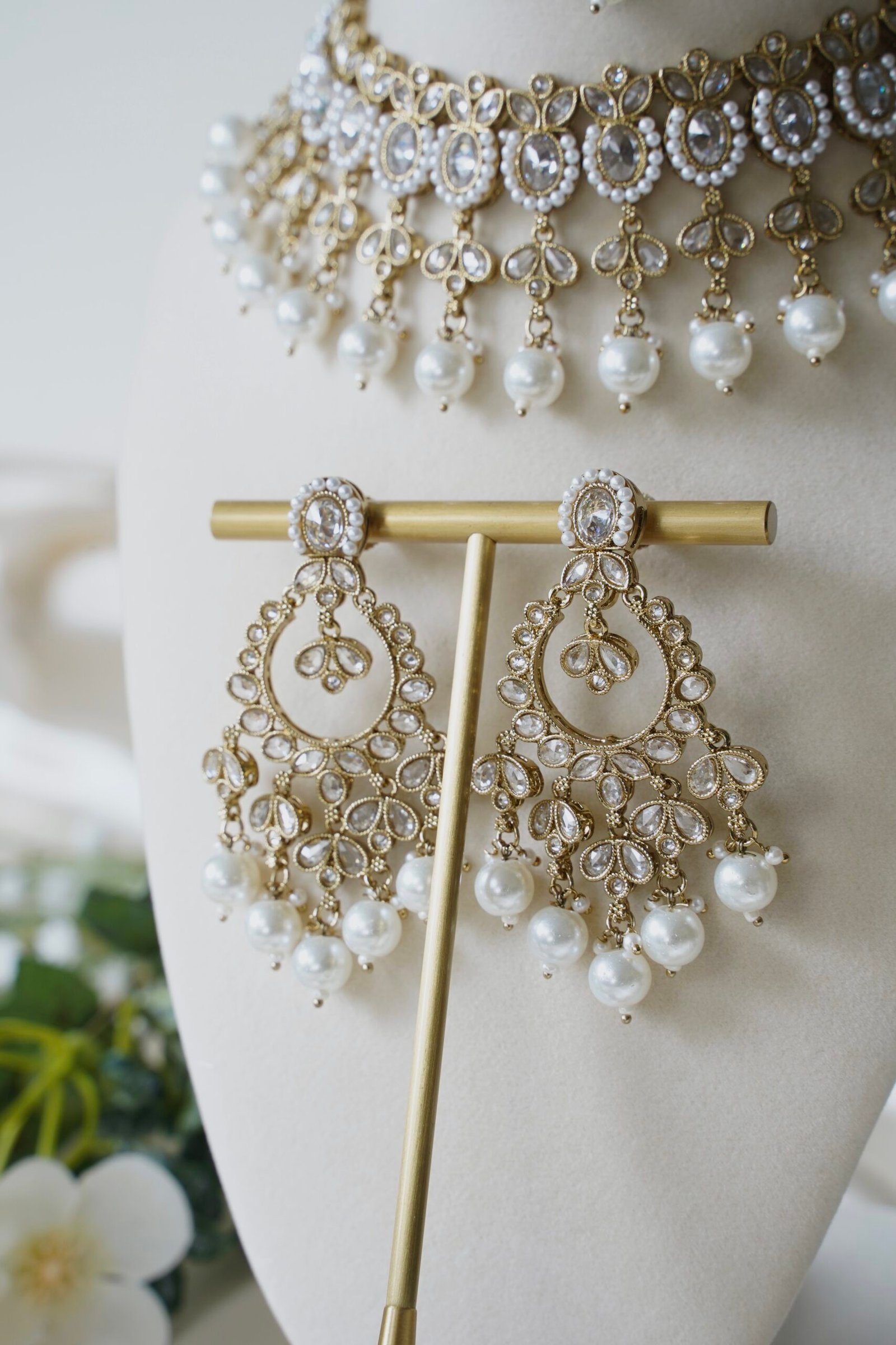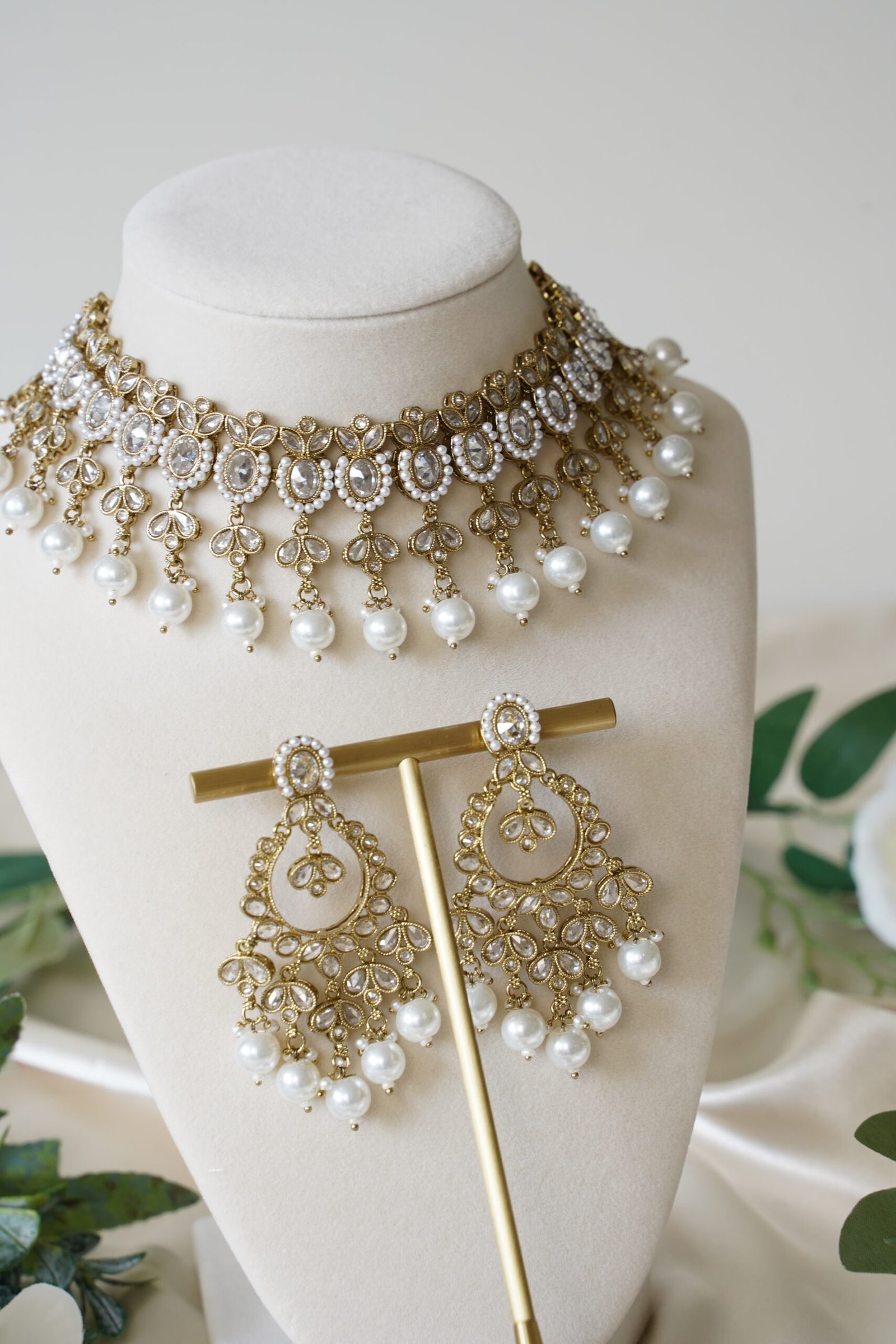 Lehara Necklace Set with White Pearls
