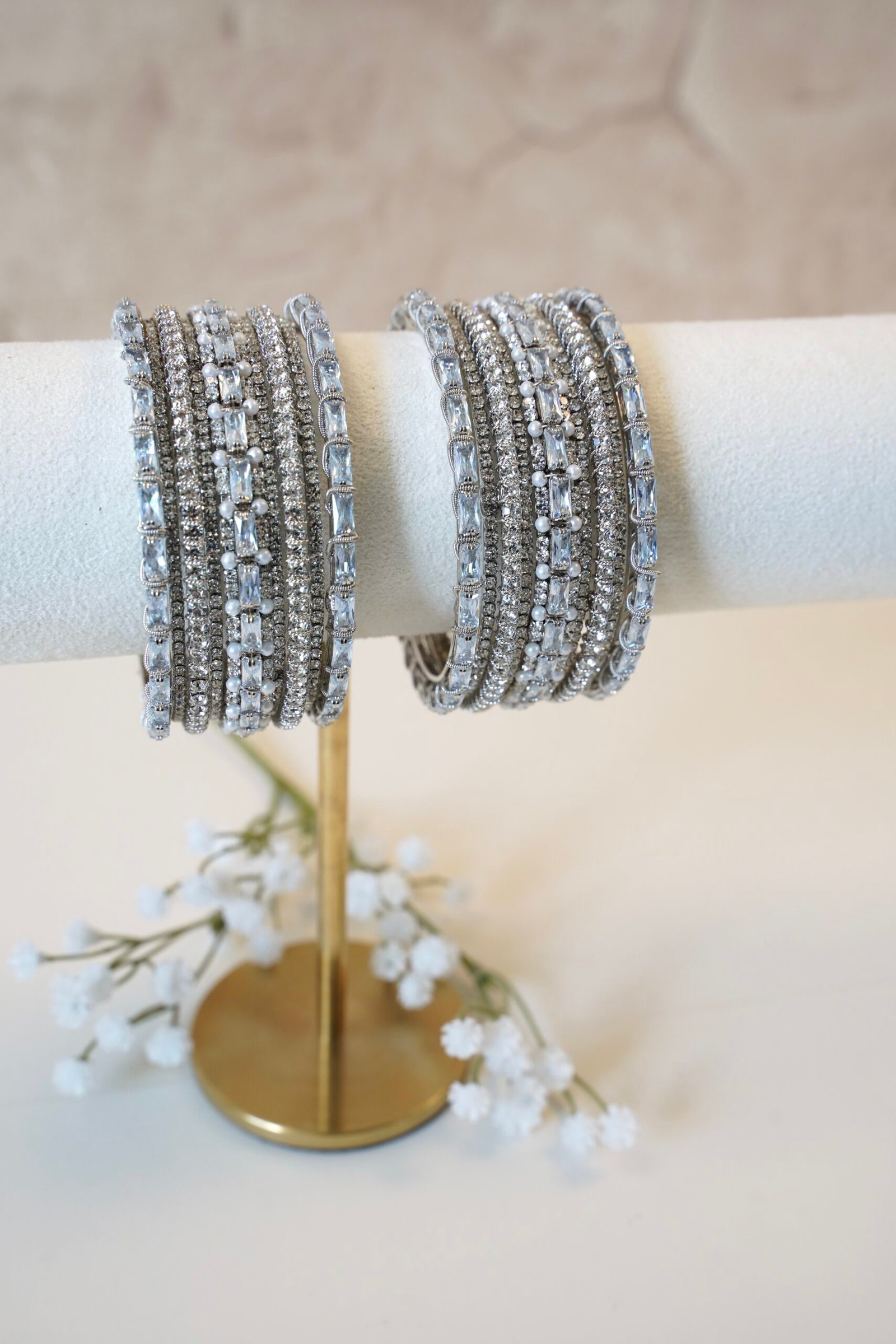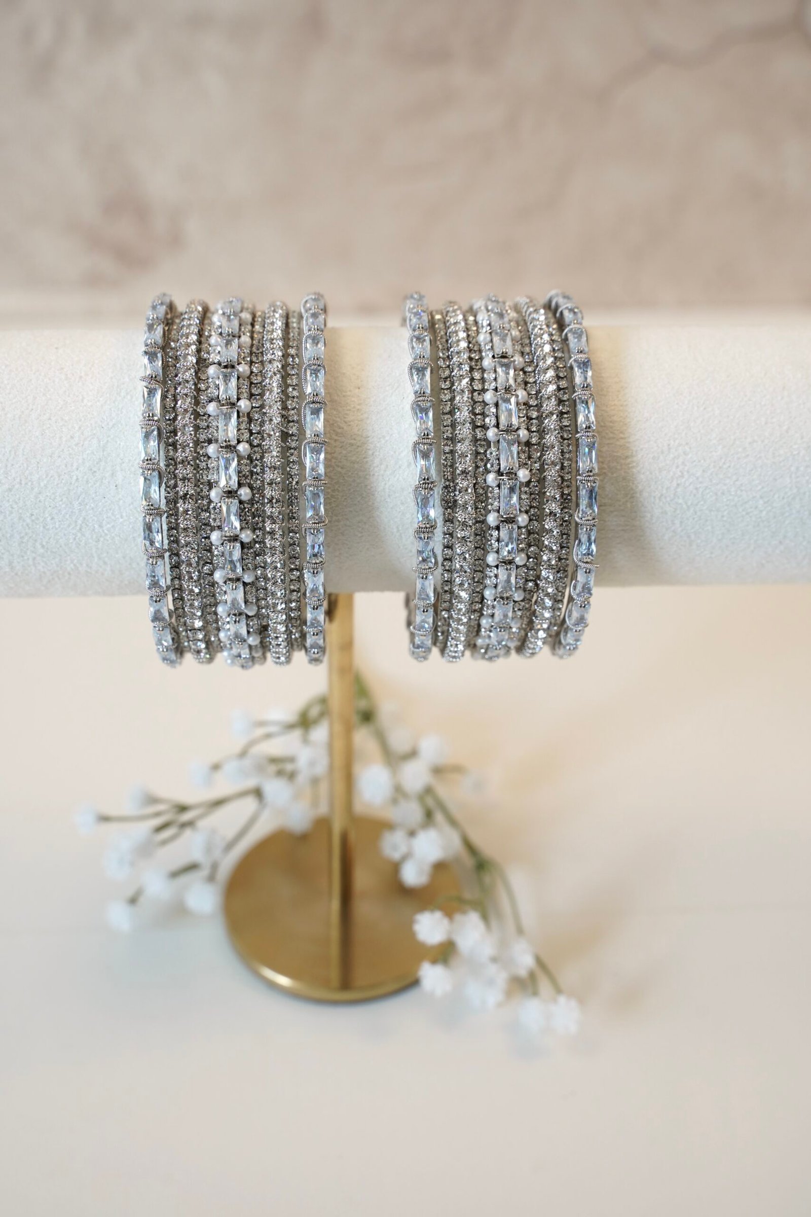 Our Sheetal Bangle Set is perfect for creating your own unique stack by mixing and matching with the color bangles of your choice, or wear it as is for an effortless style.