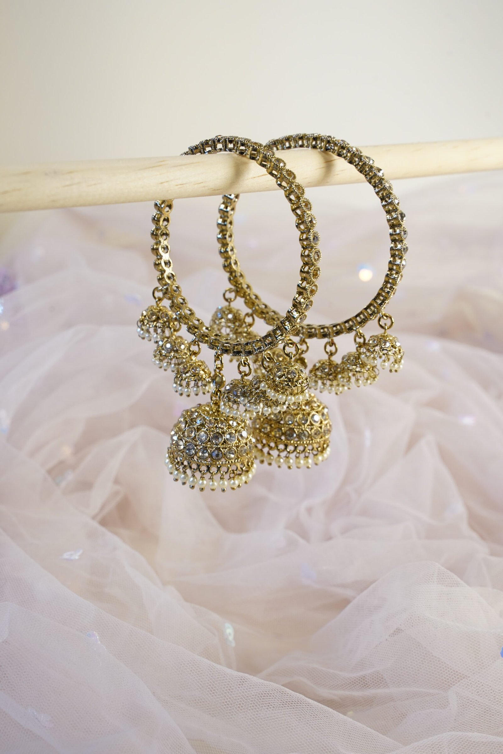 Stone and Pearls Multi Jhumka Thin Bangles